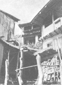 Селение расположено на крутом склоне, у обрыва; боевые башни, охранявшие подступы к нему, не сохранились. Первый ряд домов, примыкавших один к другому, составлял сплошную оборонит, линию. Мечеть и годекан (место вечерних собраний мужчин) располагались в центре селения. Жилища прямоугольные в плане, каменные, гл. обр. двухэтажные, с хлевом на первом и жильём на втором этаже. Крыши двух типов: двускатные, крытые дранкой, и плоские, земляные. Второй этаж с фасада часто предваряется галереей; кое-где сохранились лоджии открытого типа. При усадьбе иногда имеется небольшой полукрытый двор; роль двора нередко выполняет плоская крыша нижерасположенного строения. Сеновалы и помещения для хранения продуктов нередко выносились за пределы усадьбы. В кладке стен и опорных столбов часто встречались деревянные бруски. Архитектурные декоративные приёмы: арочные конструкции, кладка в «елочку», кладка из шлифованного камня, каменные рельефы (солярные знаки, лабиринты, декоративная арабская вязь), резьба по дереву (пропиленный геометрический, растительный орнамент).